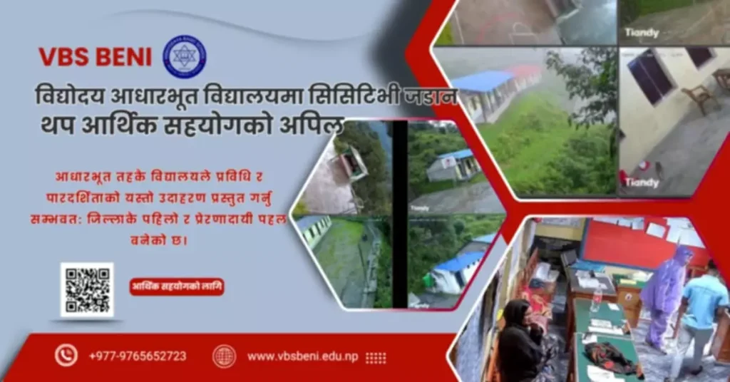 म्याग्दीको बेनी नगरपालिका-१० वाखेतस्थित श्री विद्योदय आधारभूत विद्यालयले विद्यार्थी सुरक्षा, अनुशासन र पारदर्शी शिक्षण वातावरण सिर्जना गर्ने उद्देश्यले विद्यालय परिसरमा सिसिटिभी जडान गरेको छ । सम्भवतः जिल्लामै पहिलोपटक आधारभूत तहकै विद्यालयबाट यस्तो प्रविधि प्रयोग गरिएको यो प्रयासले शैक्षिक क्षेत्रमा नयाँ उदाहरण प्रस्तुत गरेको छ।