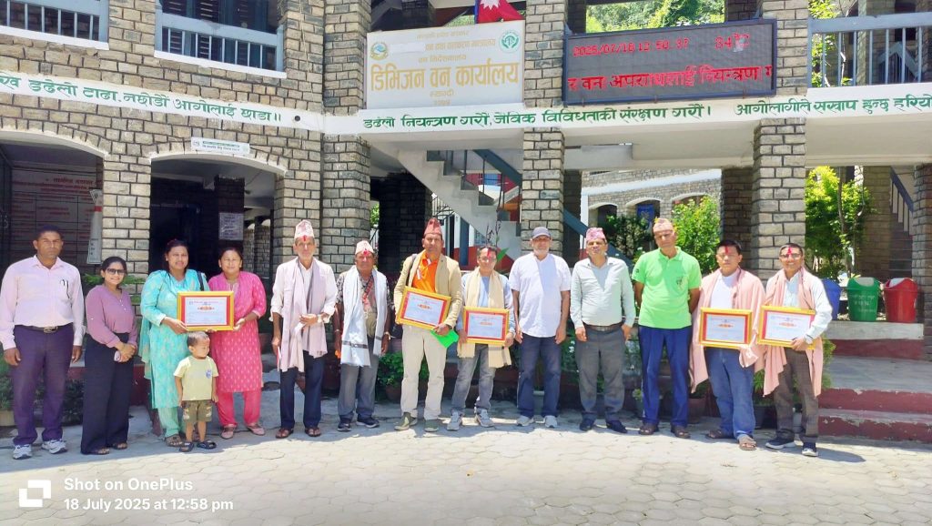 म्याग्दी, ३ साउन । म्याग्दीमा क्रियाशील सामुदायिक वन समूहहरुमध्ये उत्कृष्ट तीनवटा वन समूह शुक्रवार पुरस्कृत भएका छन् । डिभिजन वन कार्यालय म्याग्दीद्वारा गएको आर्थिक वर्ष २०८१÷०८२ मा उत्कृष्ट कार्यसम्पादन गर्ने तीनवटा सामुदायिक वन उभोक्ता समूहलाई छनोट गरी सम्मान गरिएको हो ।