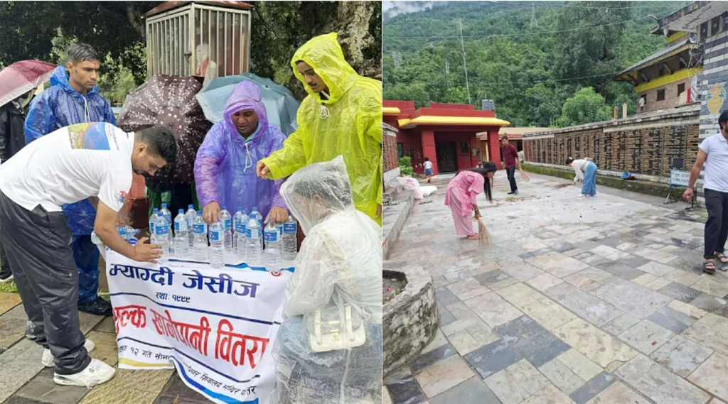 धार्मिक आस्था र सामाजिक उत्तरदायित्वलाई जोड्ने उद्देश्यले सञ्चालन गरिएको कार्यक्रम अन्तर्गत सोमबार गलेश्वरधाममा दर्शन गर्न आएका भक्तजनहरूलाई जेसीजमार्फत निःशुल्क रुपमा पिउने पानी वितरण गरिएको थियो । बिहानैदेखि म्याग्दी जेसीजका सदस्यहरू खटिएर भक्तजनलाई सहज रुपमा पूजाअर्चना गर्न आवश्यक व्यवस्थापनमा सहयोग गर्नुका साथै पानी वितरण गरिएको म्याग्दी जेसीजले जानकारी दिएको छ ।