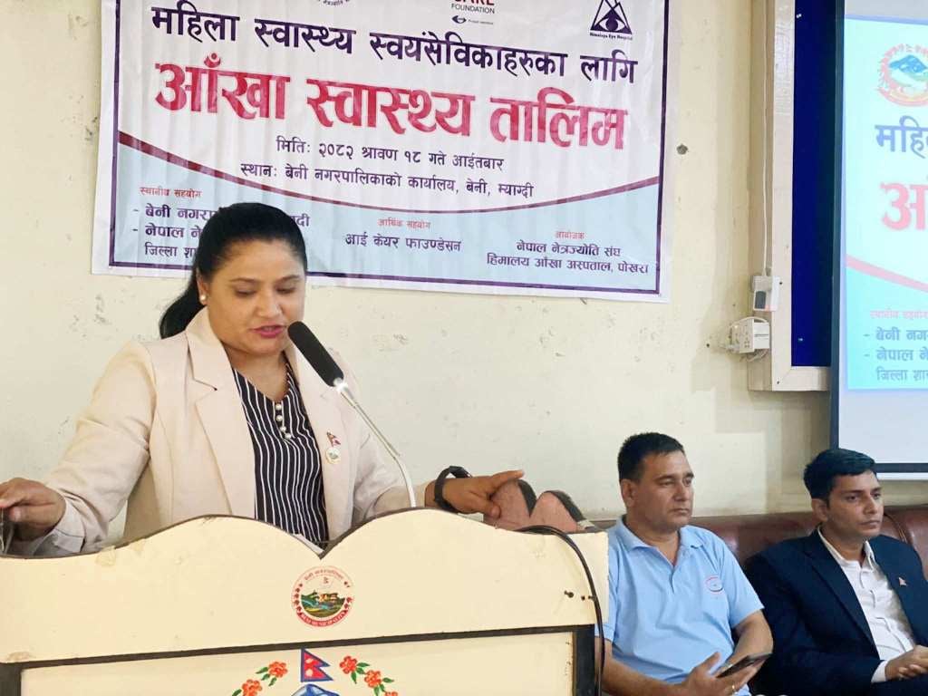 नेपाल नेत्रज्योति संघ हिमालय आँखा अस्पताल पोखराको आयोजना, नेत्रज्योति संघ जिल्ला शाखा म्याग्दी र बेनी नगरपालिकाको सहयोग तथा आईकेयर फाउन्डेशनको आर्थिक सहयोगमा तालिम सञ्चालन गरिएको हो ।