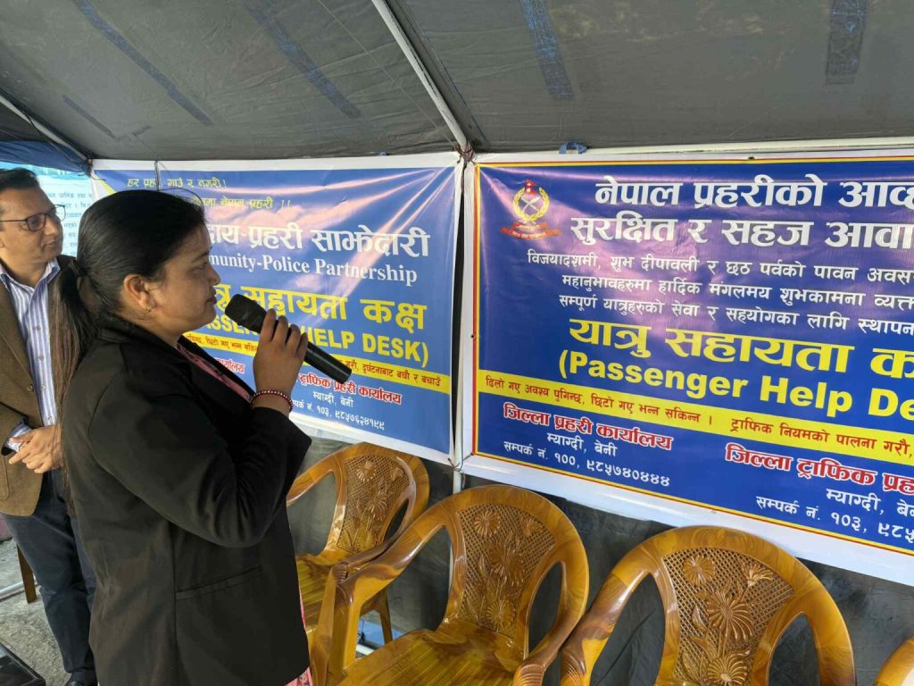 सहायता कक्षको उद्घाटन कार्यक्रममा जिल्ला समन्वय समिति म्याग्दीका कार्यवाहक प्रमुख डिलकुमारी खत्री र प्रमुख जिल्ला अधिकारी बद्रीप्रसाद तिवारीले चाडपर्वको समयमा सर्वसाधारणलाई सहज र सुरक्षित रूपमा यात्रा गर्ने व्यवस्था मिलाउन यातायात व्यवसायी र सुरक्षाकर्मीहरूलाई आग्रह गर्नुभयो ।