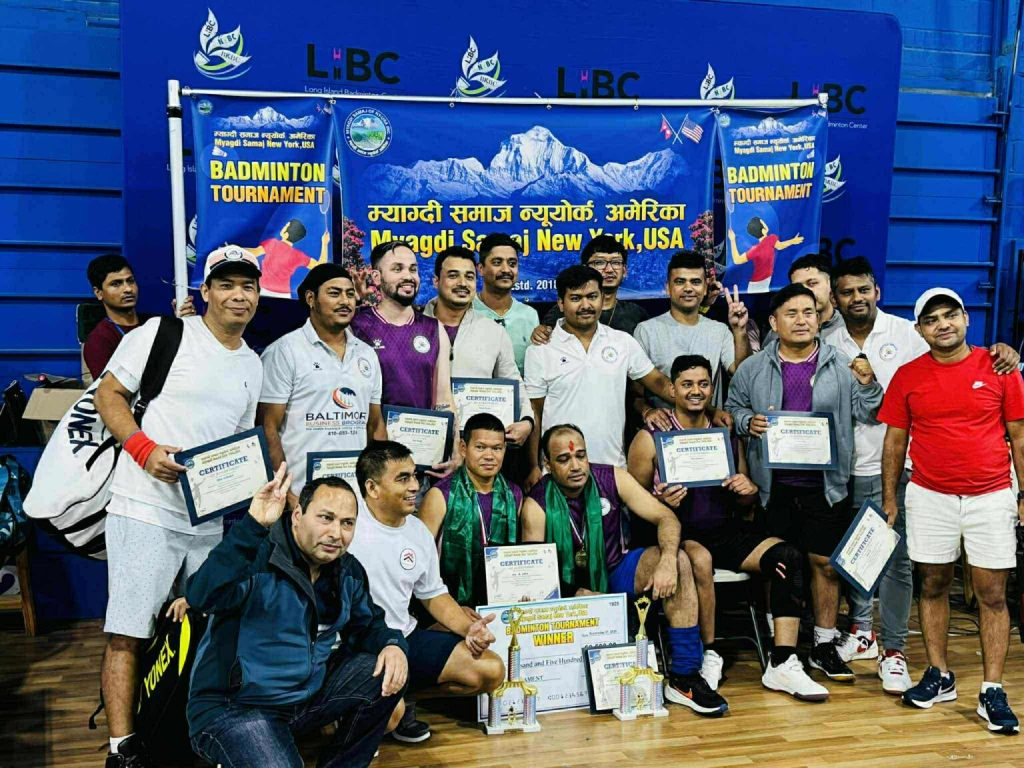 नेपालीहरूको महान पर्व विजया दशमीको अवसरमा म्याग्दी समाज न्युर्योक अमेरिकाले आयोजना गरेको खुल्ला ब्याटमिन्टन प्रतियोगिता टिम बाल्टिमेरिका कुल रोका र किशोर श्रेष्ठको टिम प्रथम हुनुभएको छ ।