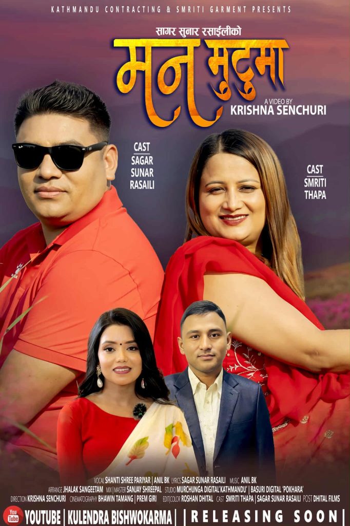 काठमाडौँ कन्स्ट्रक्टिङ र स्मृति गार्मेन्टको प्रस्तुतिमा तयार गरिएको ‘मनमुटुमा’ एल्बम शुक्रबार सार्वजनिक गरिएको छ। सर्जक सागर सुनार रसाइलीको शब्द र सिर्जनामा बनेको छ . एल्बममा गायक–गायिका शान्ति श्री परियार र अनिल बि.क.को स्वर समावेश गरिएको छ। गीतको लय अनिल बि.कले तयार गरेका हुन्।
