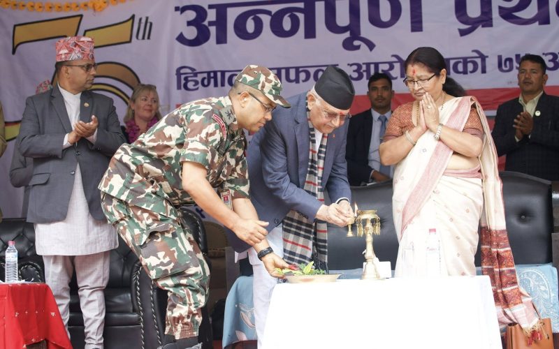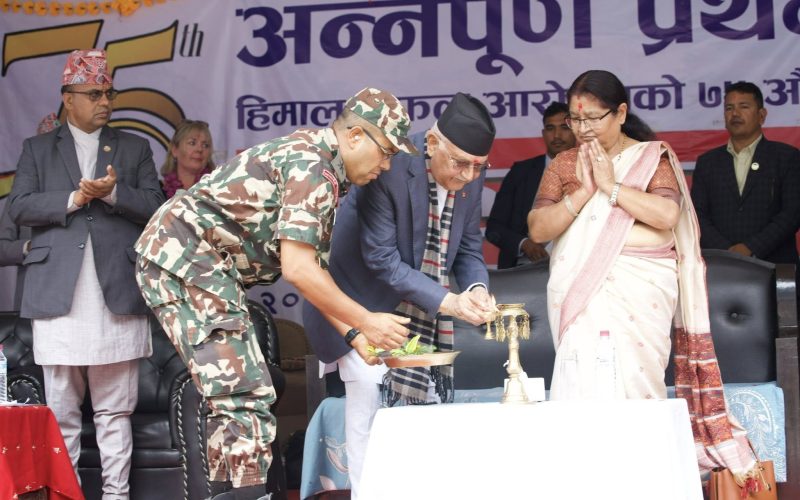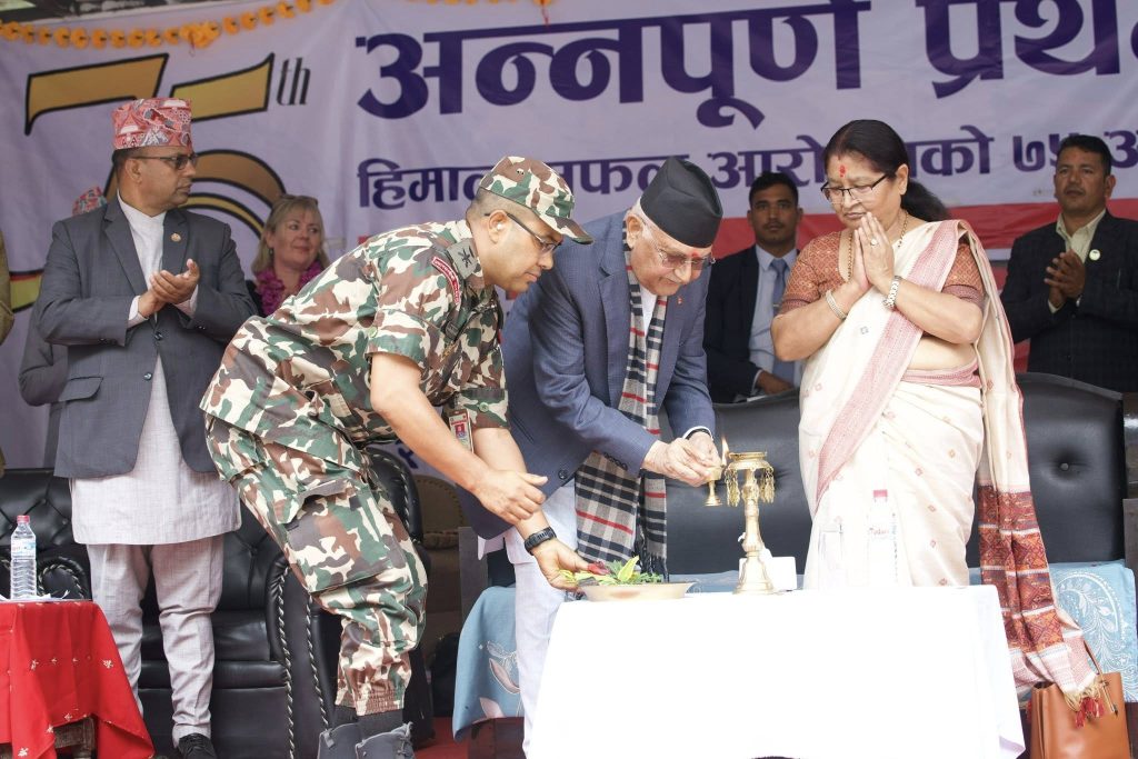 म्याग्दी जिल्लाको अन्नपूर्ण गाउँपालिकामा आयोजित अन्नपूर्ण हीरक महोत्सव–२०८२ को भव्य उद्घाटन गर्न सम्माननीय प्रधानमन्त्री केपी शर्मा ओली विशेष पाहुना रूपमा आउनु भएको छ। हीरक महोत्सव स्थापनाको ७५ वर्ष० ले अन्नपूर्ण क्षेत्रको सांस्कृतिक, पर्यटकीय र ऐतिहासिक महत्त्व उजागर गरेको छ।