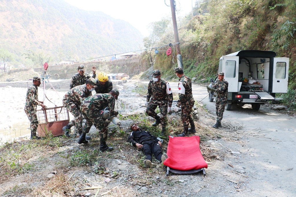 म्याग्दी– म्याग्दीको मङ्गला गाउँपालिकामा शनिवार नेपाली सेनाले प्रदेशस्तरीय संयुक्त बृहत् विपद् प्रतिकार्यको नमुना अभ्यास सम्पन्न गरेको छ । गण्डकी प्रदेश सरकारको सहयोग र पश्चिम पृतना हेडक्वार्टर पोखराको निर्देशनमा श्री नं. २३ बाहिनी अड्डा बागलुङद्वारा मङ्गला–२, लाम्पाटा र ५ नम्बर वडा हाँडे भीरमा नमुना अभ्यास गरिएको हो ।