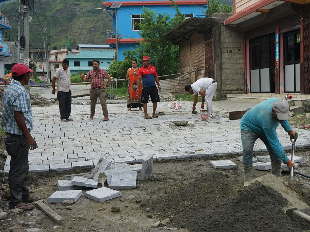 बेनी नगरपालिका–९ स्थित म्याग्दीको प्रमुख धार्मिक पर्यटकीयस्थल गलेश्वरको सौन्दर्यीकरणका लागि बजारभित्रको सडकमा ढुङ्गा बिछ्याउन थालिएको छ ।